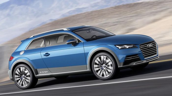 Το Audi Allroad Shooting Brake concept υιοθετεί μια νέα σχεδίαση- σε σχέση με τα υπάρχοντα μοντέλα της εταιρείας- συνδυάζοντας στοιχεία από crossover και κουπέ, με ορισμένες πληροφορίες να αναφέρουν ότι μας προϊδεάζει σχεδιαστικά για την επόμενη γενιά του TT. Έτσι, στο εμπρόσθιο μέρος τις εντυπώσεις κλέβει η μεγάλη εισαγωγή και τα φωτιστικά σώματα, με τα σπόιλερ και τους 19άρηδες τροχούς να κλέβουν την παράσταση.
